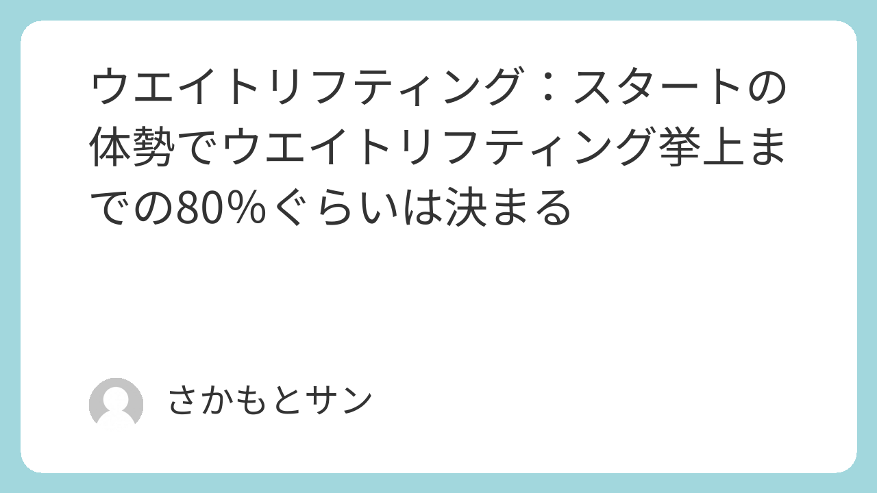 ウエイトリフティング:スタートの体勢でウエイトリフティング挙上までの80%ぐらいは決まる[2025.3.29著]