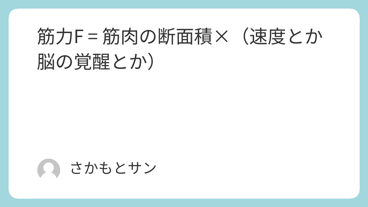 筋力F = 筋肉の断面積×(速度とか脳の覚醒とか)[2020.1.20著]
