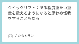 クイックリフト クイックリフト:ある程度重たい重量を扱えるようになると思わぬ怪我をすることもある クイックリフト:ある程度重たい重量を扱えるようになると思わぬ怪我をすることもある 2025.11.01 クイックリフト